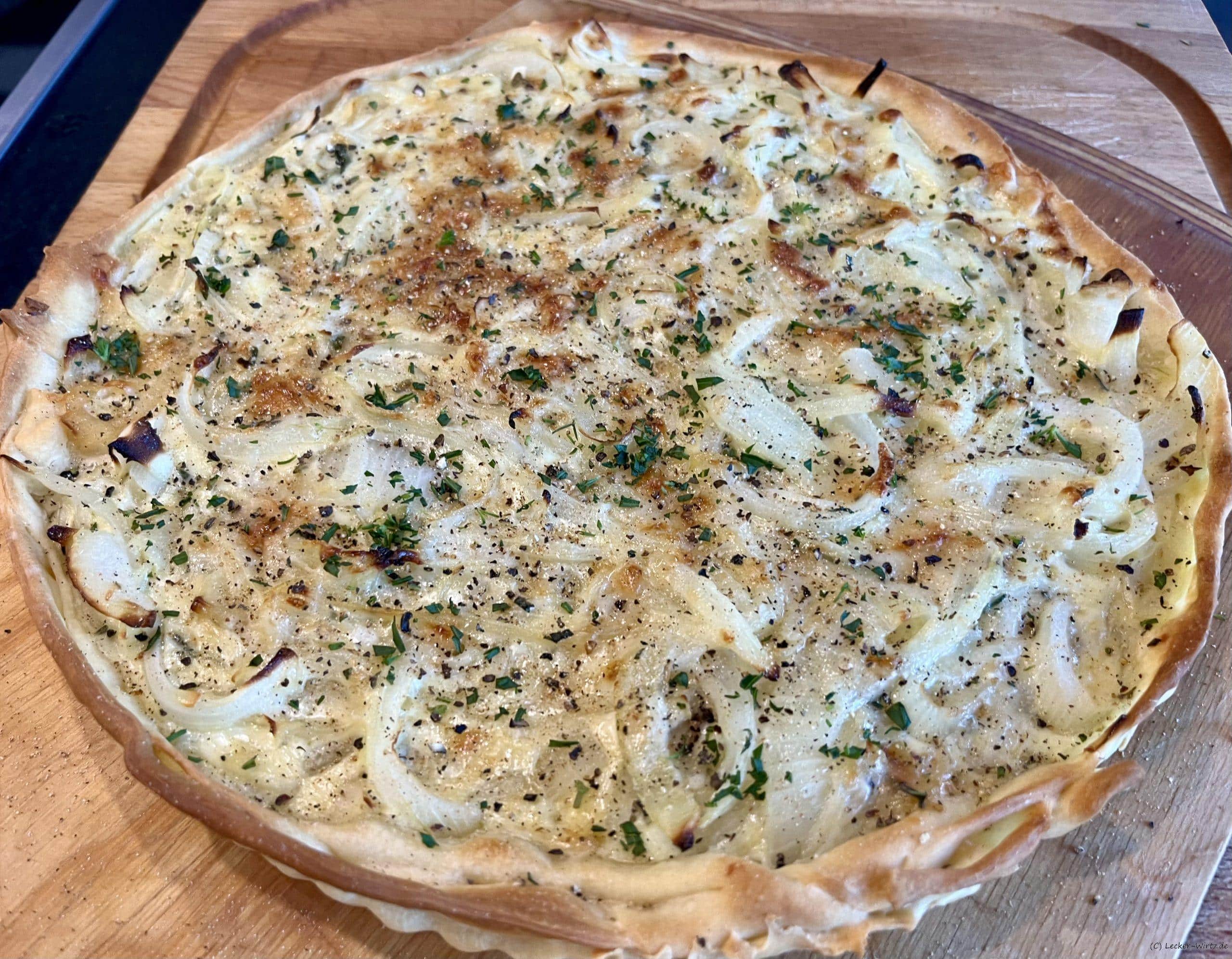 Brotzeit-Kultur: Kreative Aufstriche und Beilagen. Herzhafte Quiche mit Zwiebeln und Kräutern.