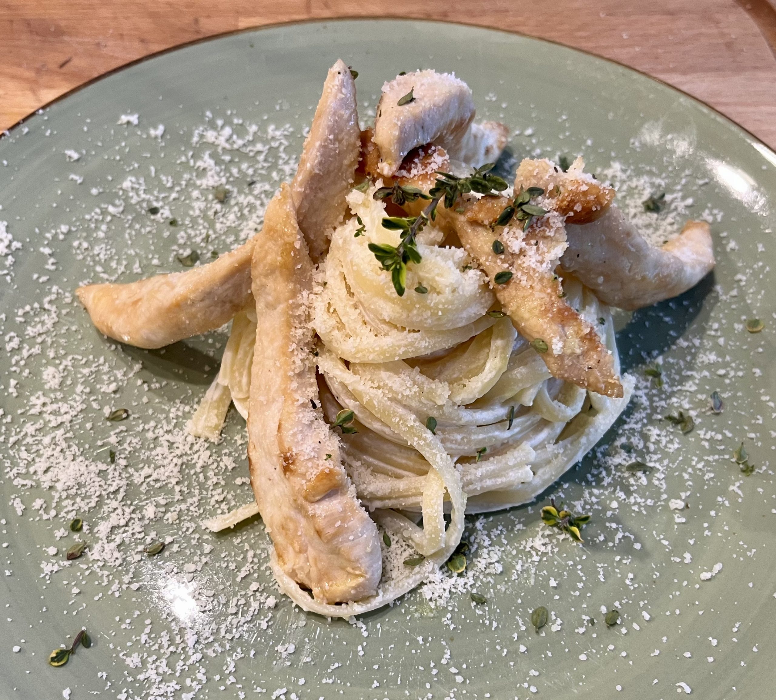 Zitronenpasta mit Hähnchenfiletstreifen nach dem Zitronenpasta Rezept, das vor 3 Jahren “in aller Munde” war. Die leckere Pasta ist eine sehr gute Grundlage für gebratenen Lachs, Scampi oder Hühnchenbrust.