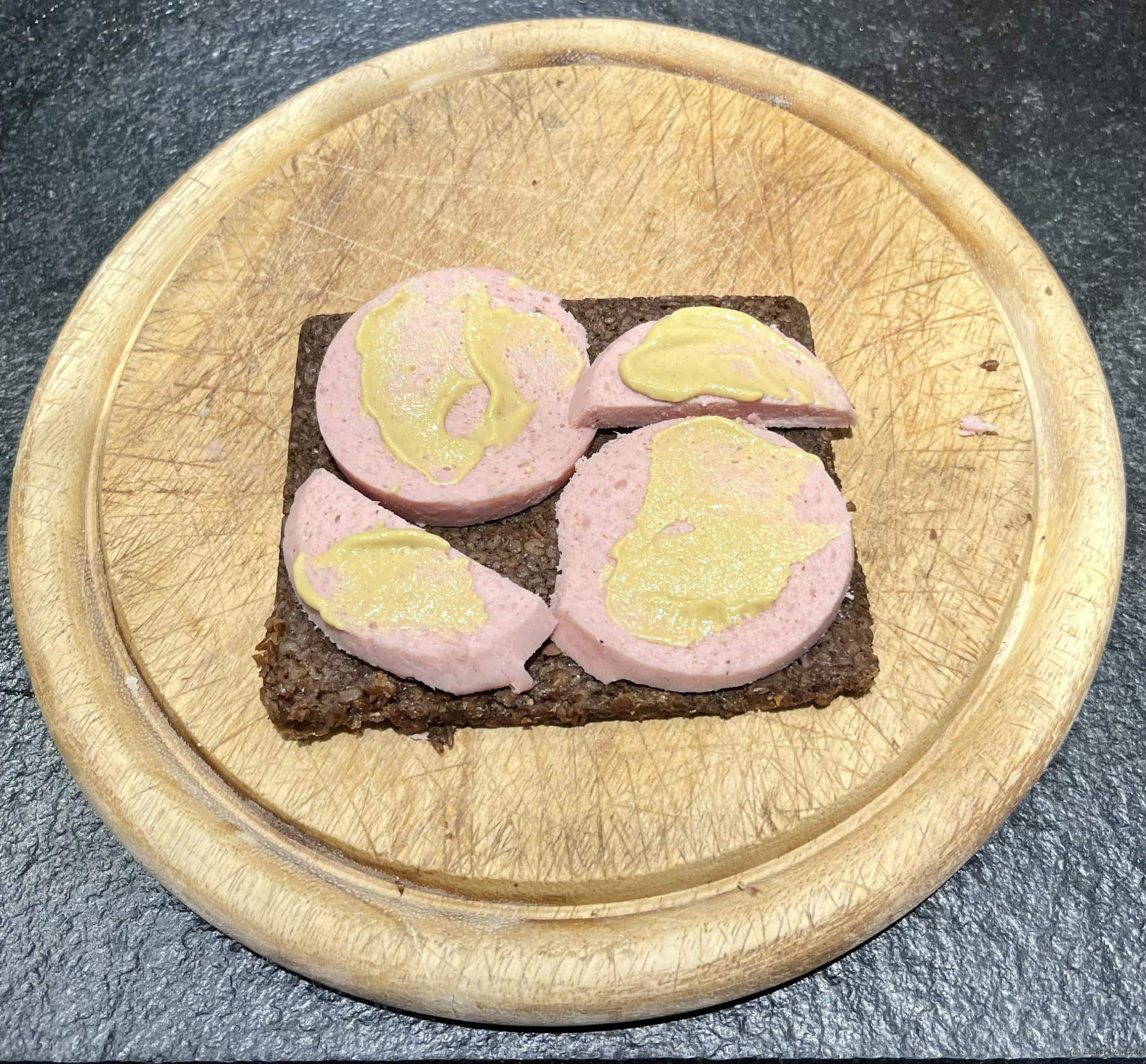 Pumpernickel, Fleischwurst und Senf sind die Grundlagen. Manchmal gibt es auch noch etwas Butter dazu.